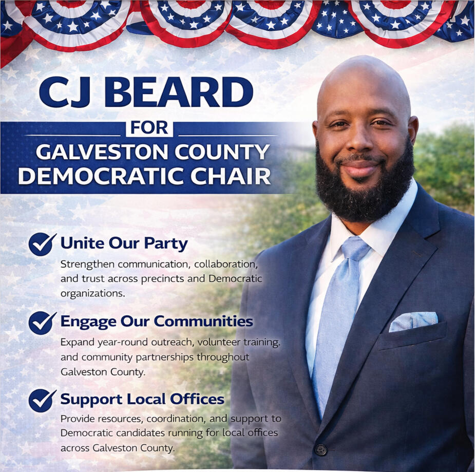 Political advertising paid for by Carl Beard Jr., Candidate for Galveston County Democratic Chair.